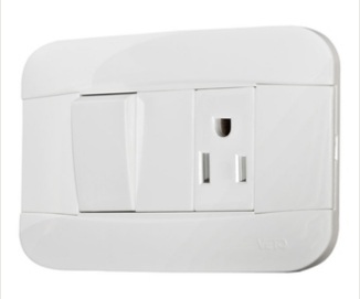 Tomacorriente + interruptor con luz piloto para empotrar VETO PLATA